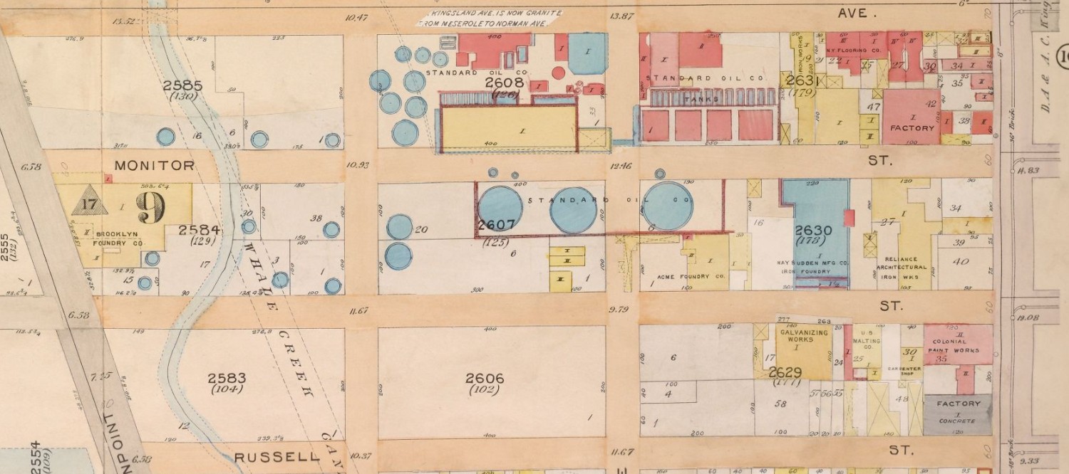 This map from 1904-1912 shows the size and scale of the anvil manufacturing facility. The building is bounded on the west by Monitor street and North Henry Street on the east.